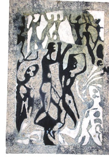 | Modern art with references to ethnic. Sand and other materials on glass, applied with small tube on the panel to plexiglass out the depht. | |||||||||
