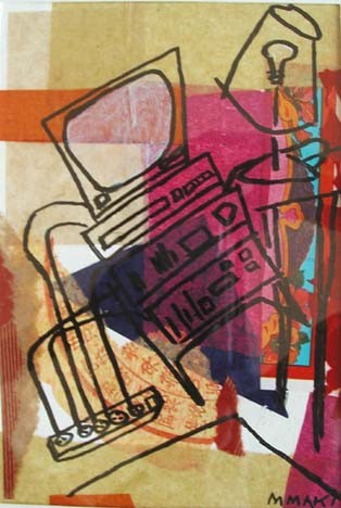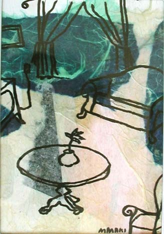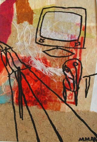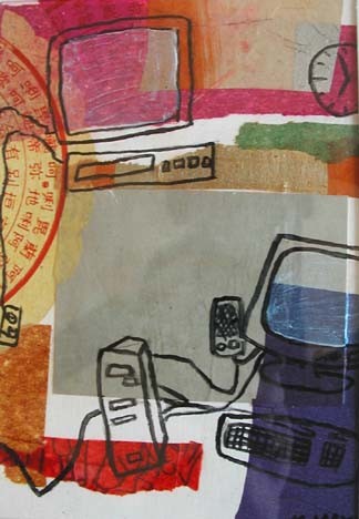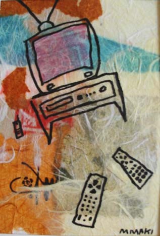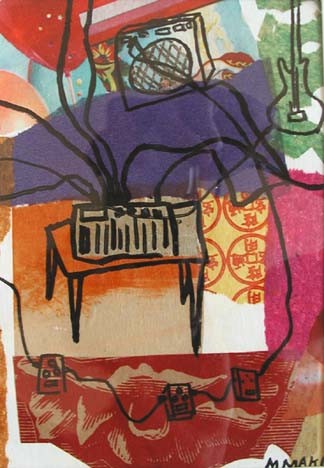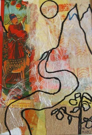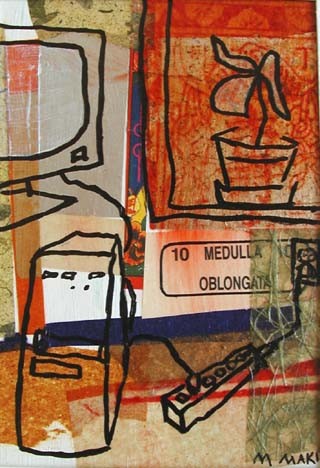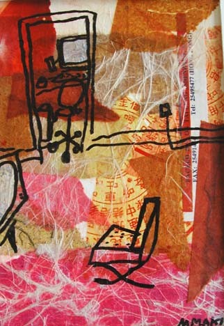 | Los Angeles painter Maureen Maki's latest works are images from daily life. The media is collaged paper, paint, and pen & ink. | ||||||||